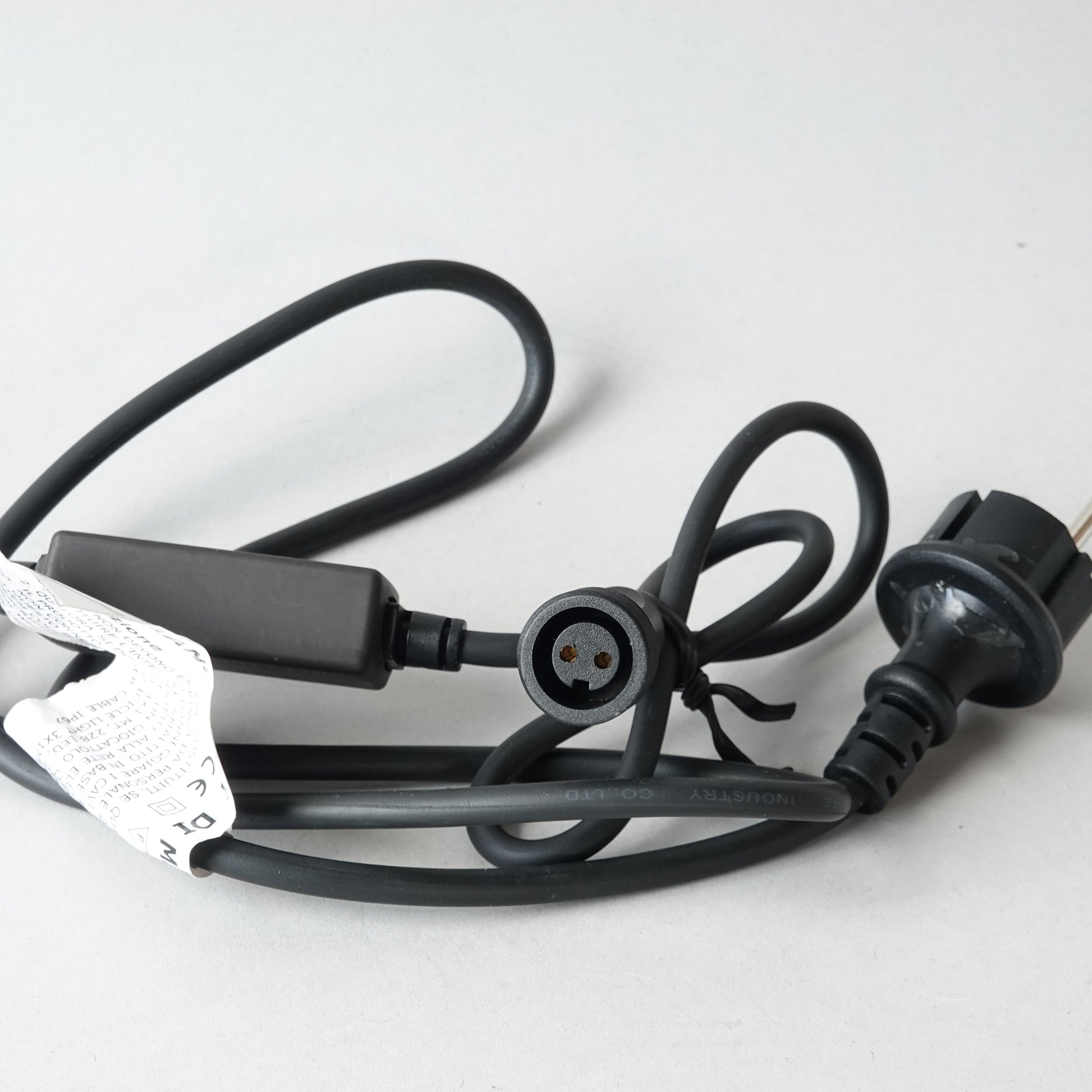 1,5 m langes Gummikabel mit Schuko-Stecker, 3-A-Sicherung und integriertem 6-A-AC/DC-Gleichrichter zur Stromversorgung von 230-V-LED-Vorhängen, Eislichtern und Lichterketten. Gewährleistet unterbrechungsfreie und sichere Stromversorgung bei fachgerechter Installation. Schutzart IP44, ideal für den Innen- und Außenbereich.