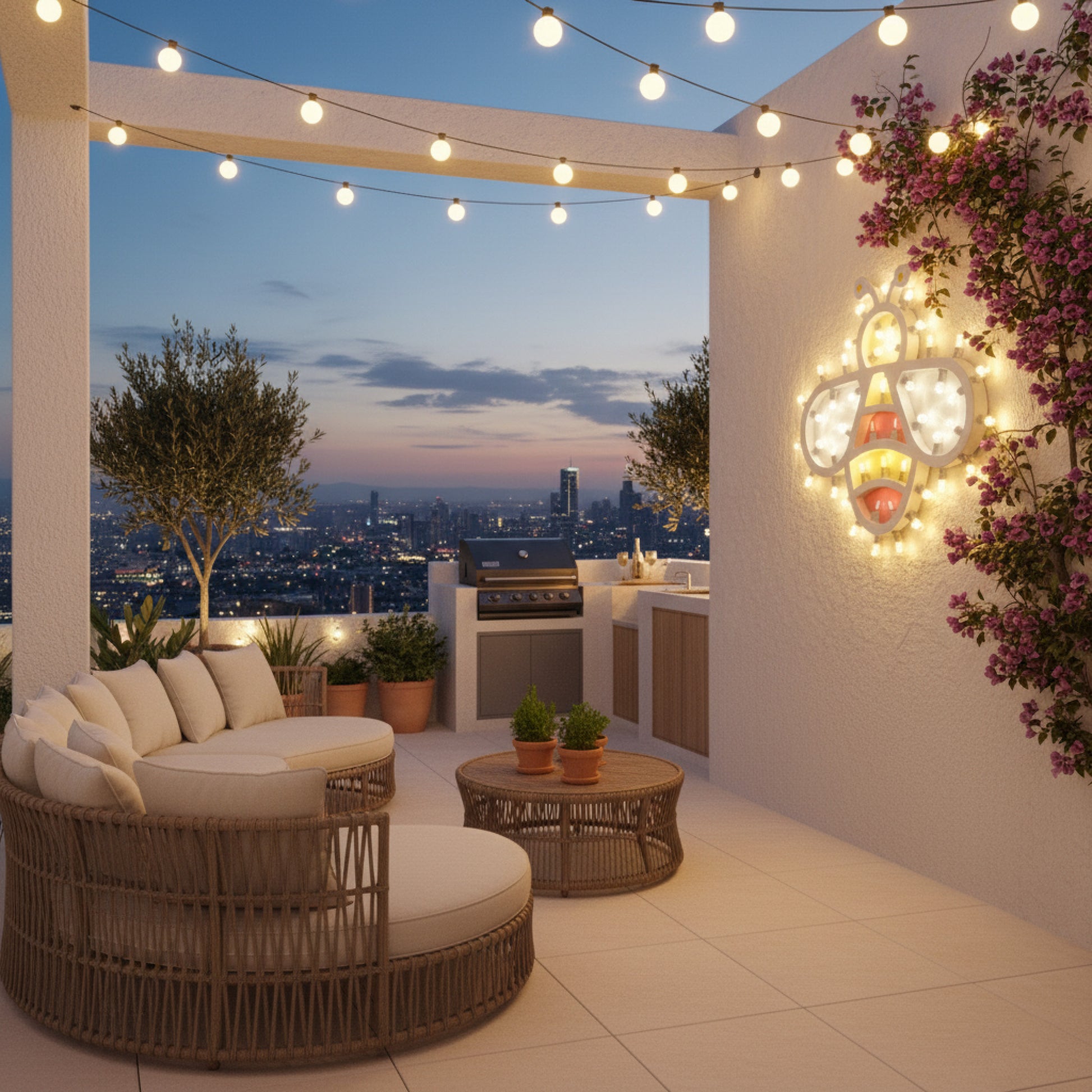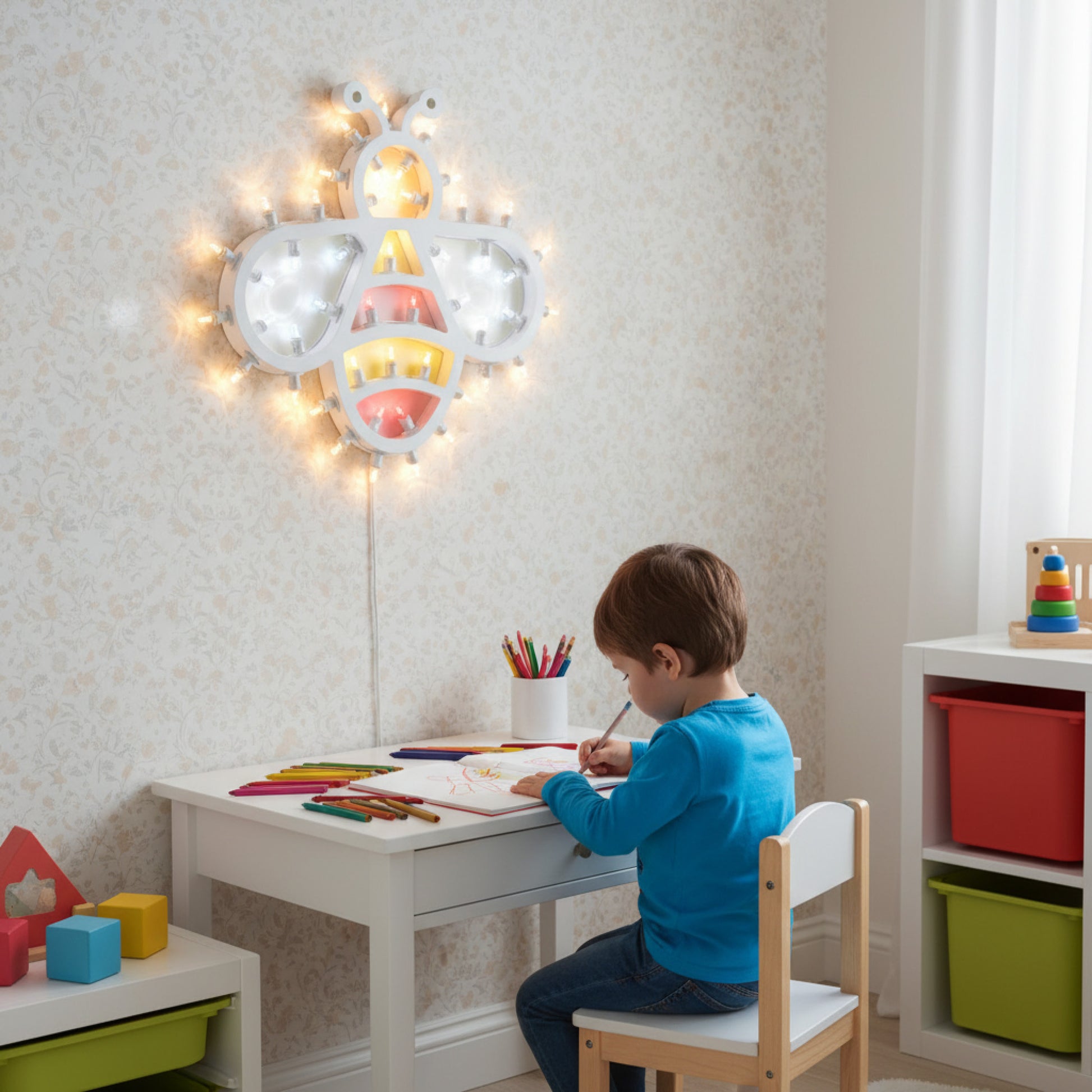 Ape Grande è la versione leggermente più ampia della luminaria Ape, pensata per chi desidera un impatto visivo maggiore senza rinunciare alla semplicità e alla dolcezza del modello originale. Mantiene la forma giocosa che richiama l’ape e la stessa struttura in legno verniciato, illuminata da lampadine E14, per una luce calda e avvolgente. Ideale per eventi a tema, camerette più spaziose o ambienti educativi dove si vuole dare più rilievo alla decorazione luminosa, senza cambiare stile o proporzioni. Realizzata a mano nel Salento.