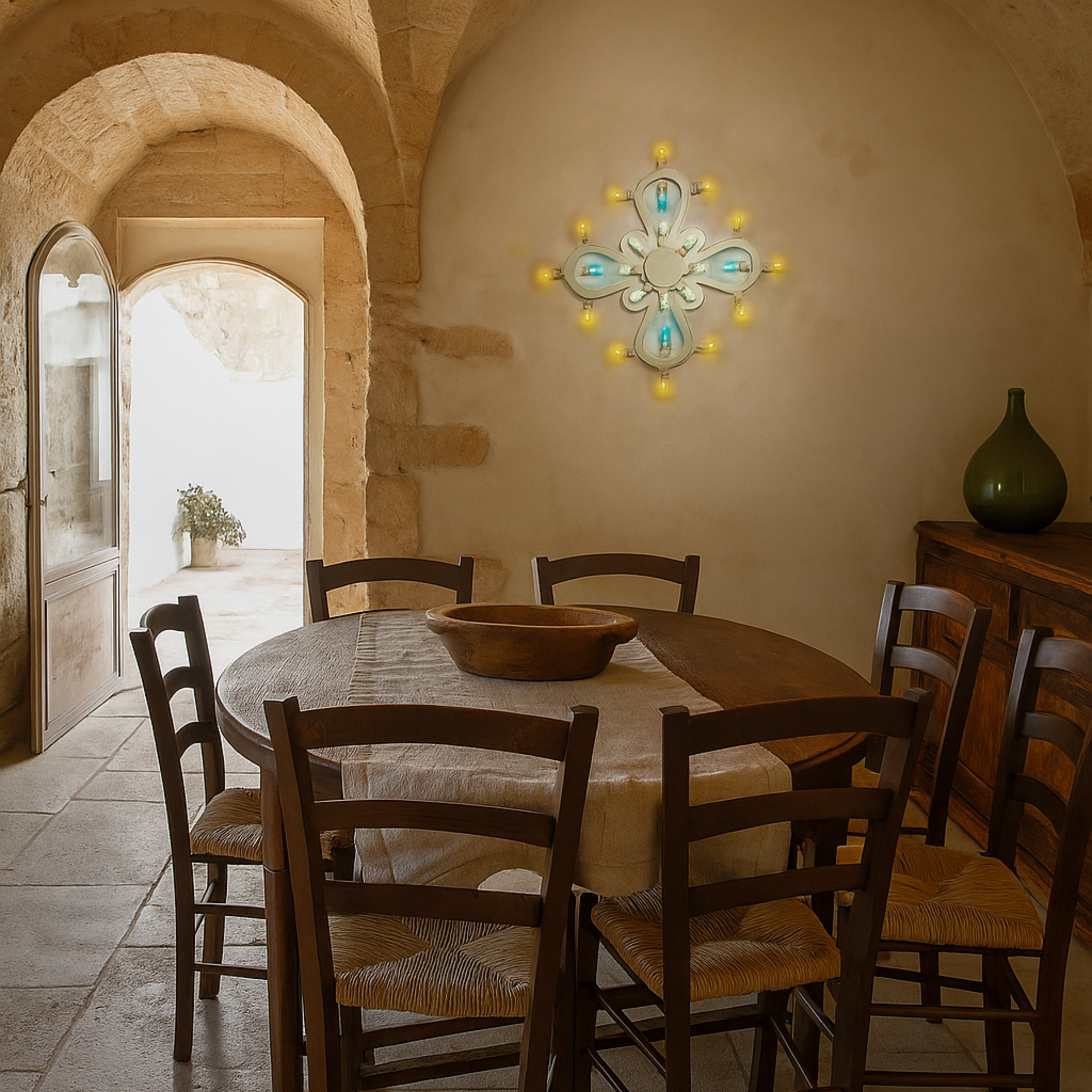 A delicately colored flower comes to life from the skillful composition of its petals, telling the story of one of the many foreign influences this land has absorbed, particularly that of the Turks. Handcrafted in Salento, Puglia.