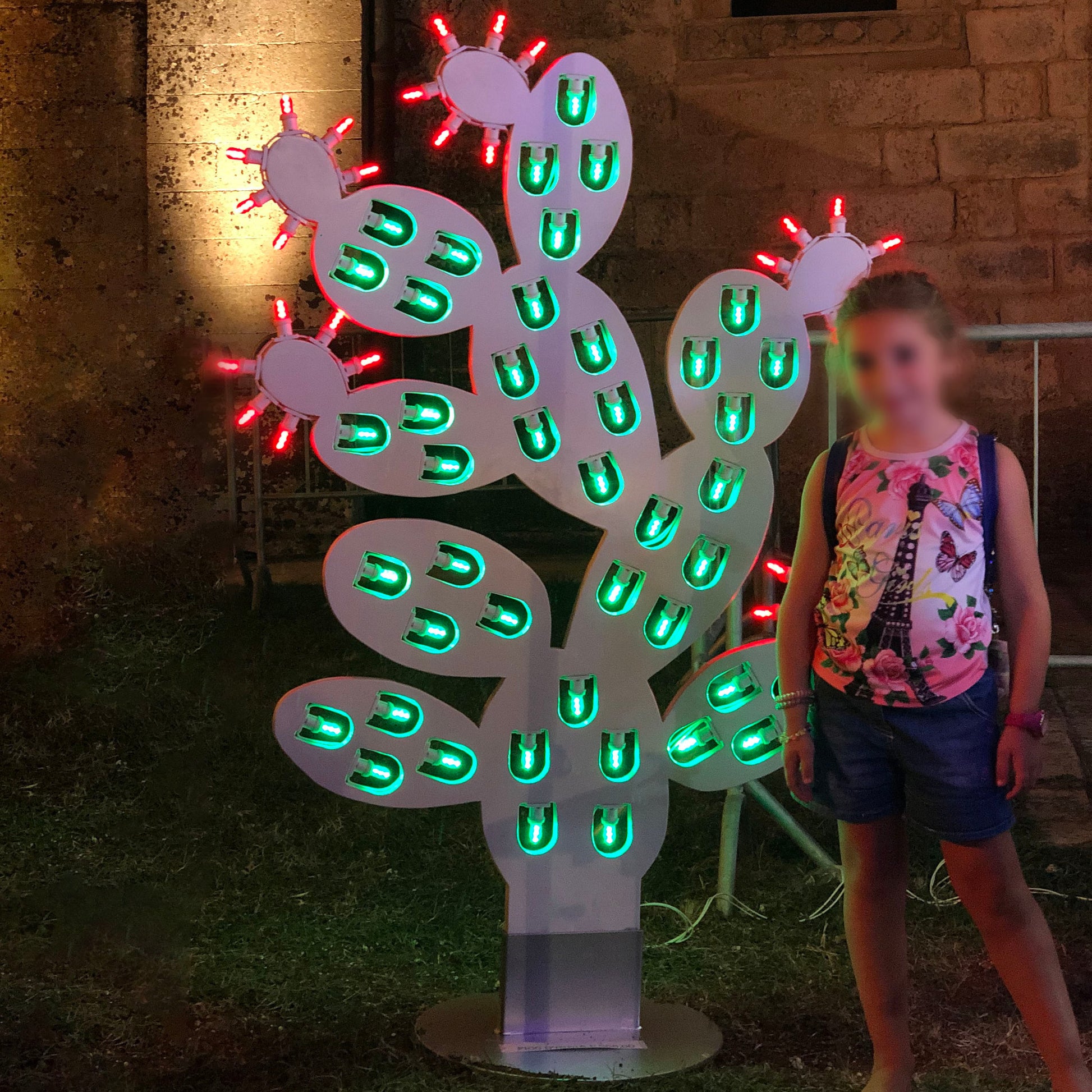 Fico d'India Grande is a light fixture inspired by the iconic profile of the prickly pear, a plant that symbolizes the Mediterranean landscape. With its soft, natural lines, it fits perfectly in rustic settings, verandas, entryways, or Mediterranean-style spaces. Handcrafted in Salento, Puglia, it uses E14 bulbs and can be used as a floor lamp to enhance large spaces and gardens.