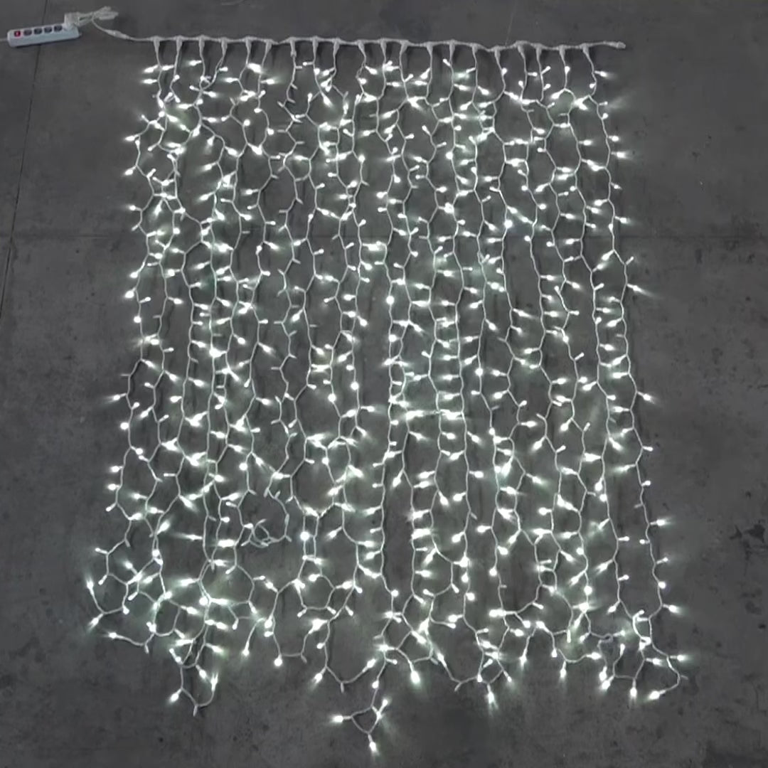 Rideau lumineux LED auto-flash, parfait pour créer une ambiance de Noël en extérieur.