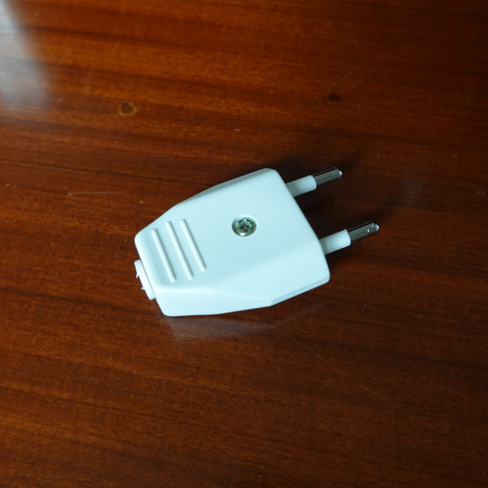 Spina europea 230V 2A a due poli tipo C con contatti rinforzati, marcatura CE.
